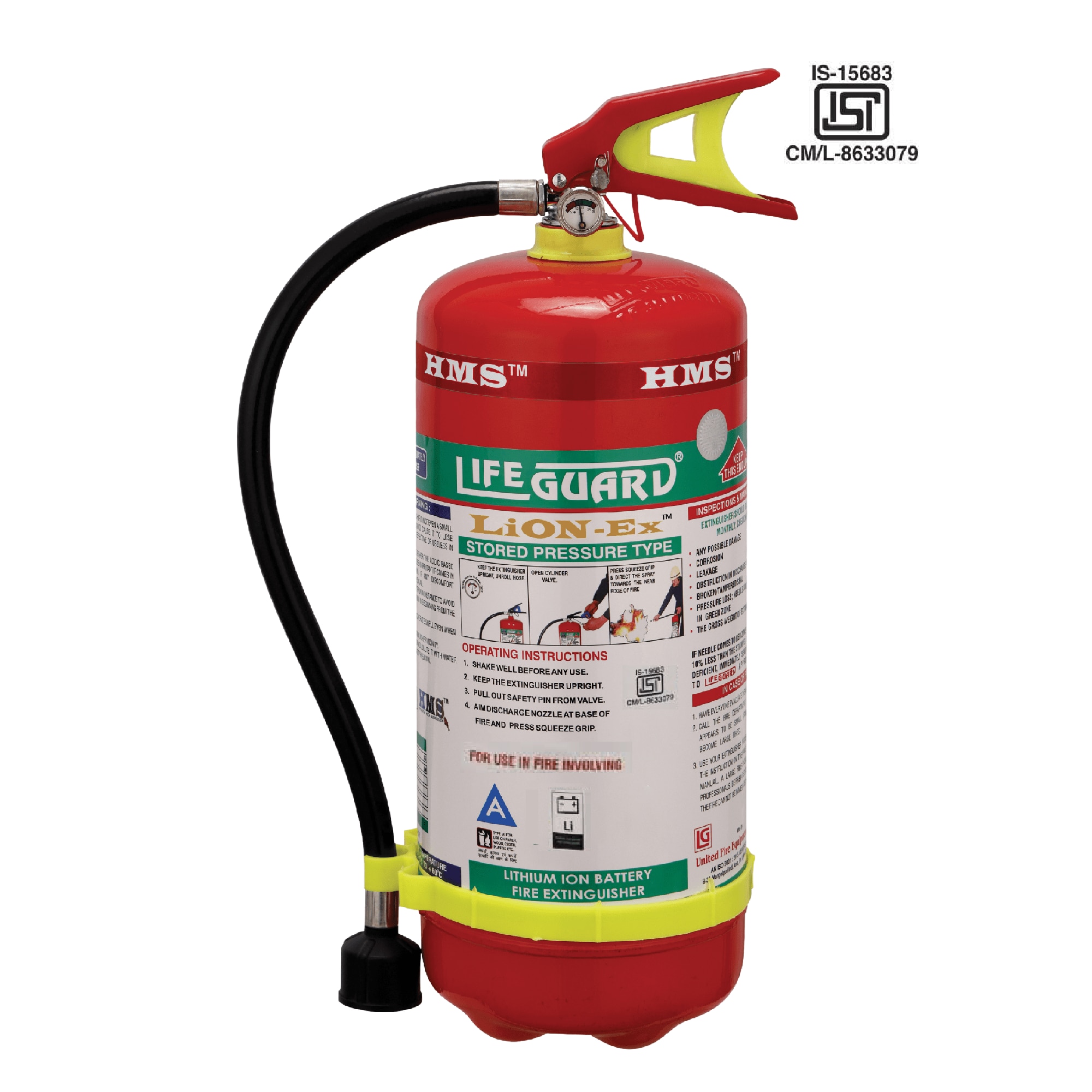 LiON-Ex Fire Extinguisher for Lithium Ion Battery fire, capacity 4 liters. filled with HMS agent, duly ISI marked, tested as per IS : 15683. Brand LIFEGUARD